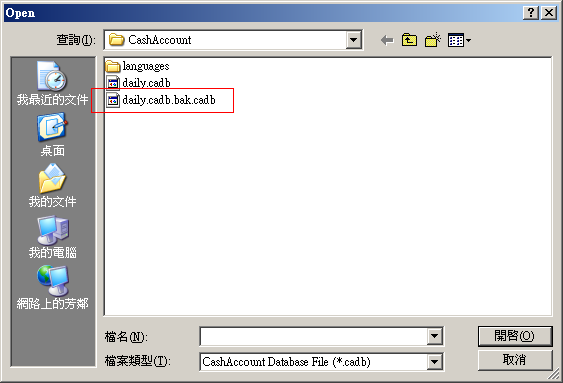 此記帳本開啟方式除了可以利用[Open (Ctrl+O)]之外,可以有兩種方式開啟: