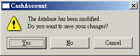 「 No」會跳過儲存動作,並進行[New]、[Open]、[Close]的動作,尚未儲存的資料庫檔案會消失。