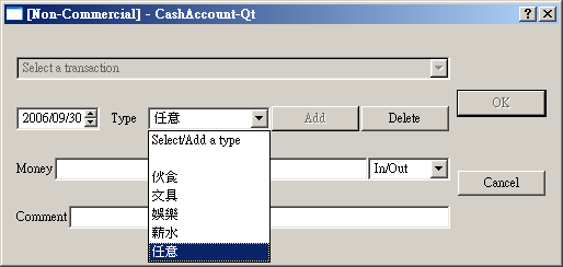 注意:第一種型別,也就是沒有任何文字的型別,這個是程式預設產生的型別,如果有不想歸類的交易,使用者可以選擇這個型別。
