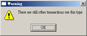 而刪除型別的方法則是選擇任一種類別,「Delete」按鈕可以作用的情形下使用。如果還有交易是這個型別,則會出現圖1-2-7的警告視窗,無法刪除。