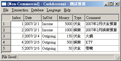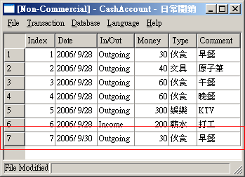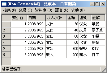 我們選擇開啟daily.cadb,開啟完如圖1-1-5所示。如此我們就可以對這筆資料庫進行交易的管理了。